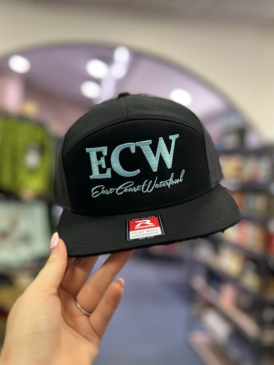 ECW 7 Panel Embroidered Logo, Black/Seafoam