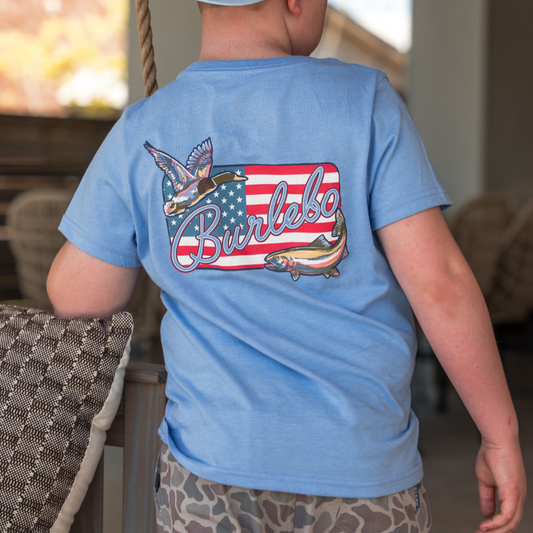 Youth Patch Flag Short Sleeve Tee, Periwinkle Blue