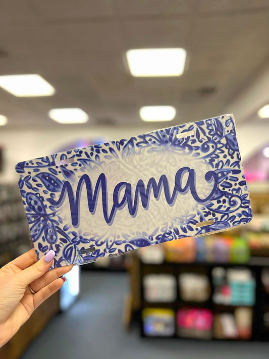 Mama Blue/White License Plate