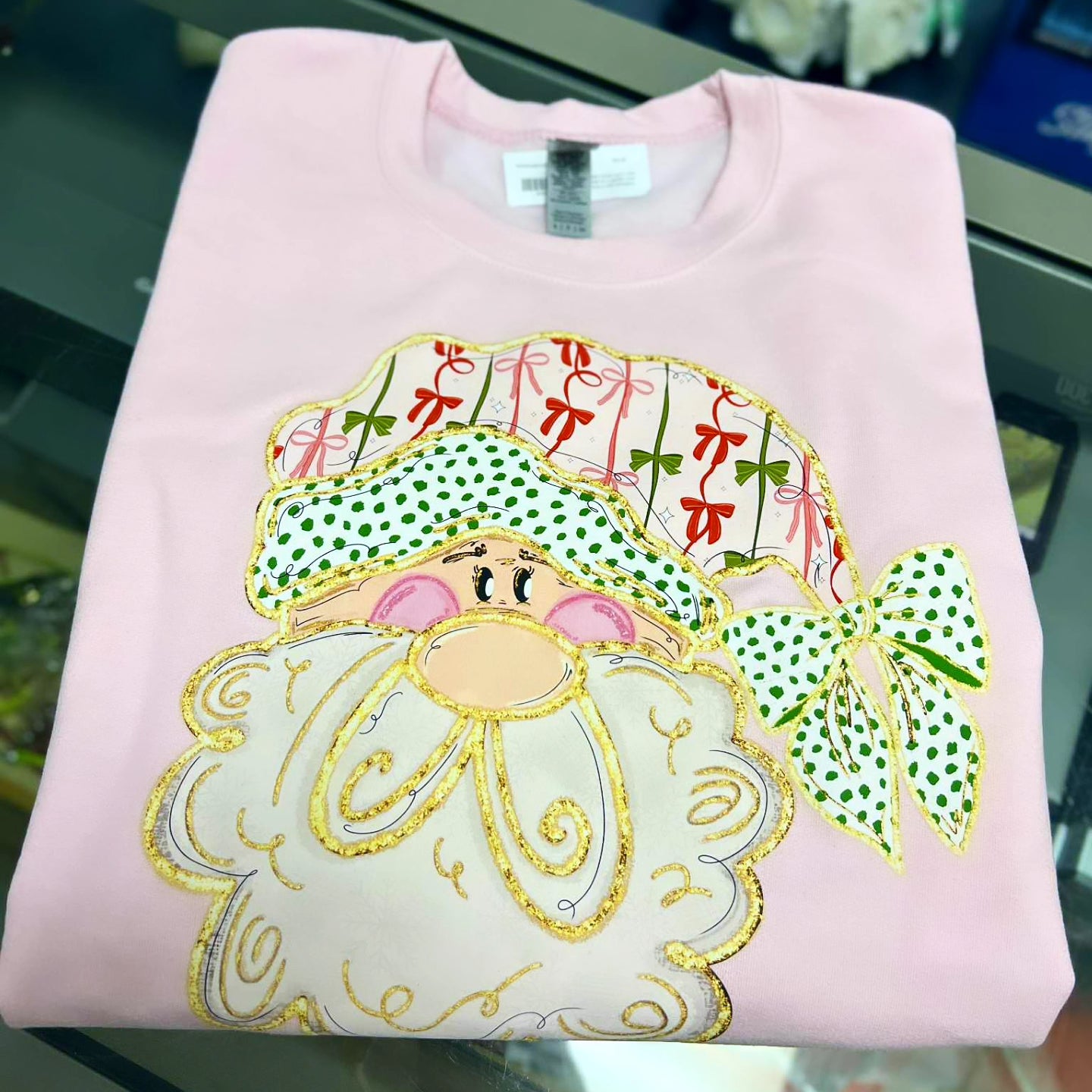 Coquette Bow Santa Crewneck, Pink