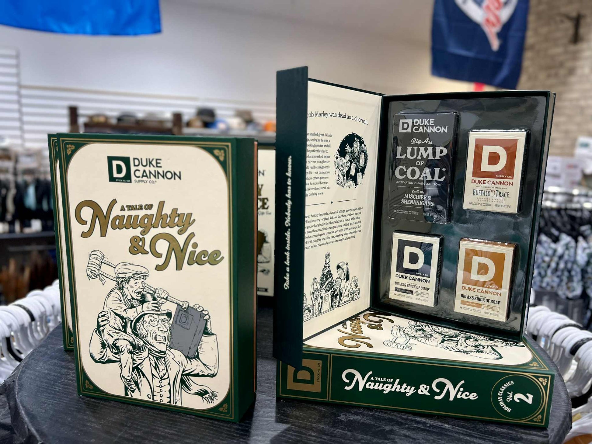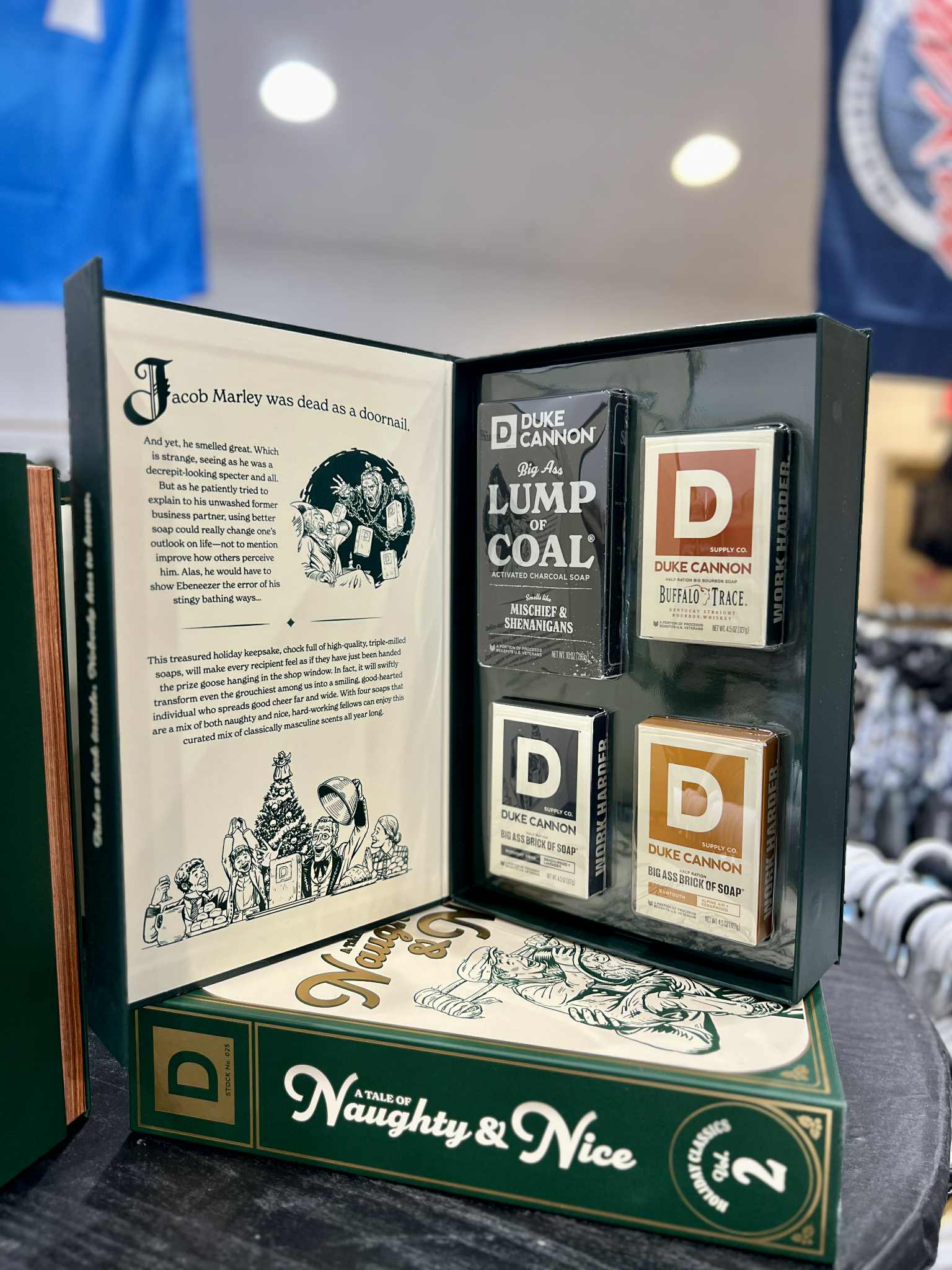 Packed cover-to-cover with a curated collection of masculine soaps, Duke Cannon's Naughty & Nice gift set is an instant holiday classic that looks just as great as it smells. With one 10 oz. Big Ass Brick of Soap and three 4.5 oz. half rations, this handsome book is equally at home on a mahogany bookshelf as it is in your bathroom (which is where you probably do most of your reading anyway).